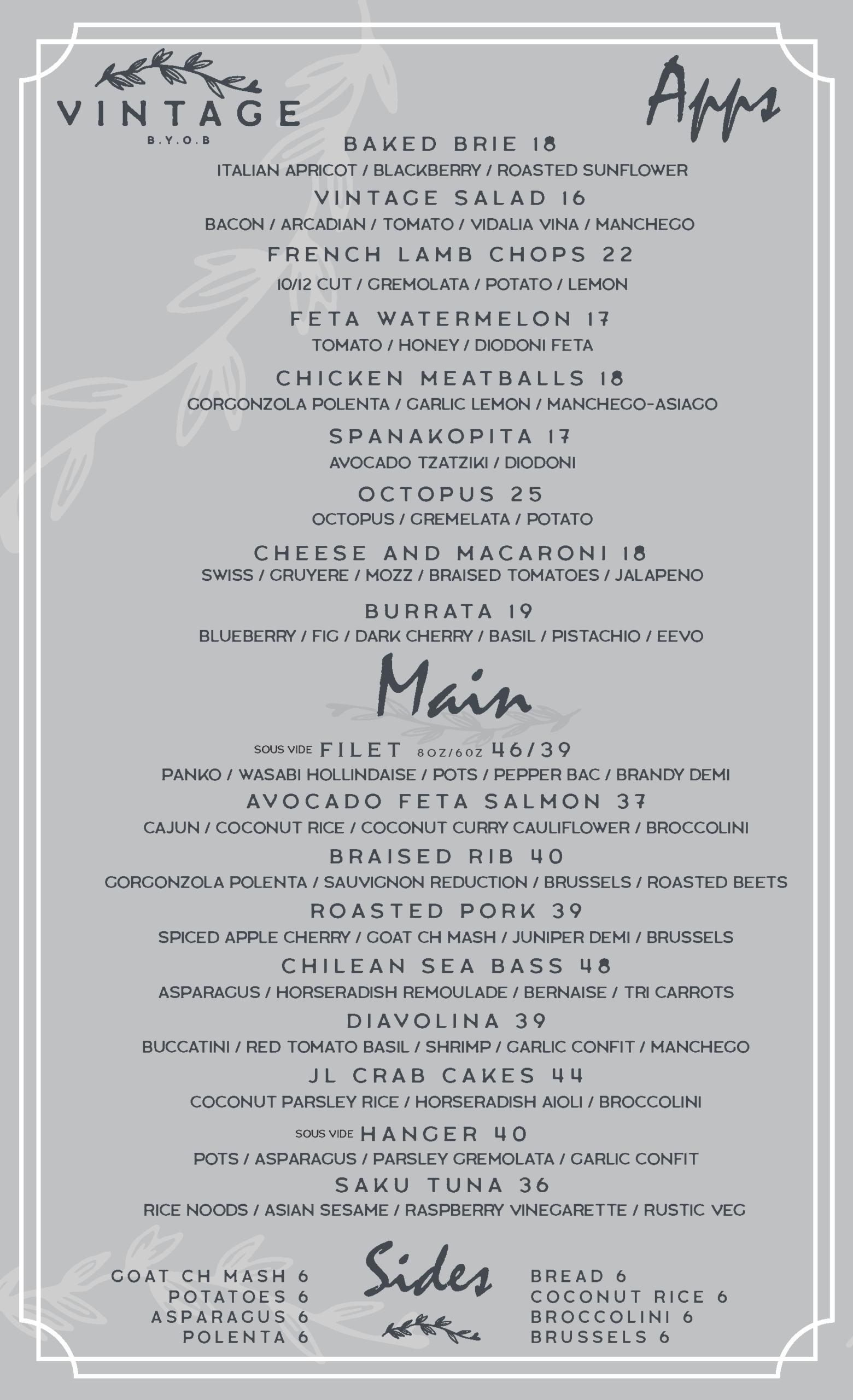BYOB | Pet-Friendly | Cash & Major Credit Cards Accepted